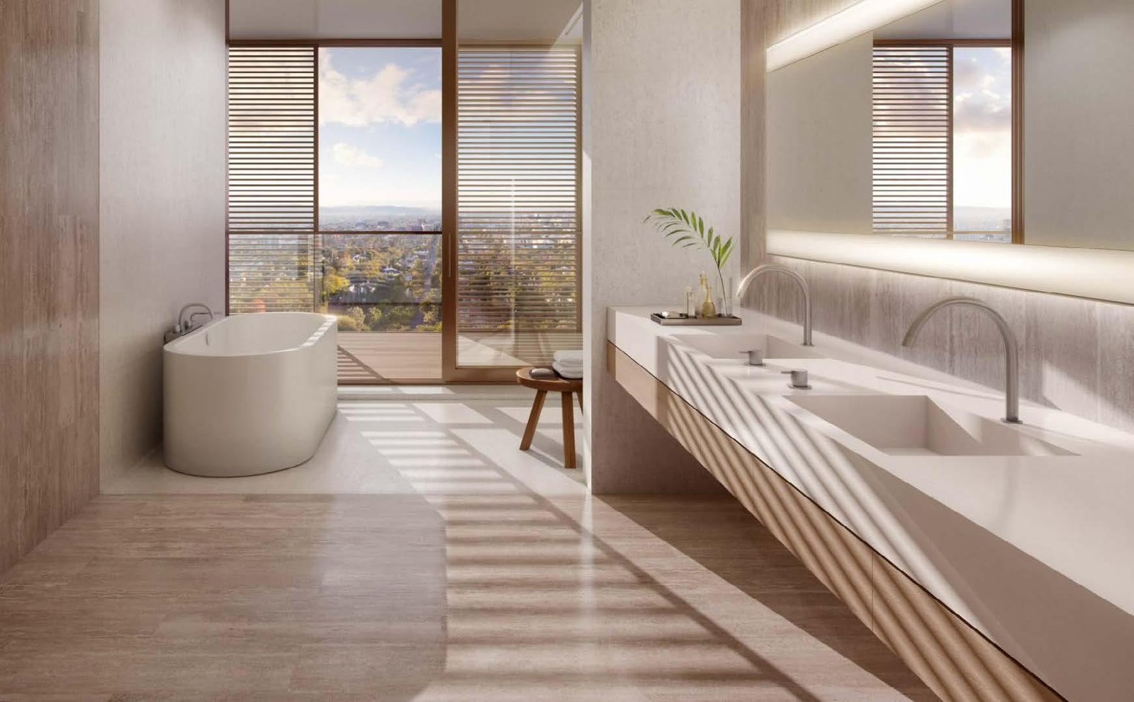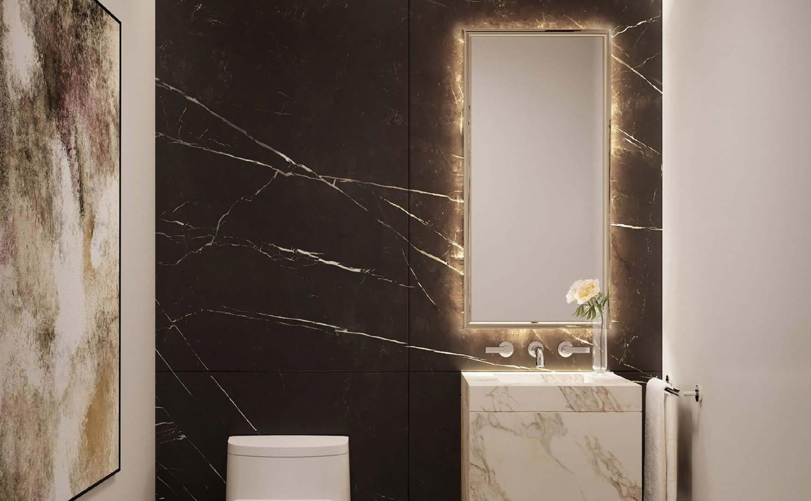 Residents enjoy amenities such as hotel-inspired lobbies, an infinity pool, a residential theater, co-working spaces, 24/7 concierge services, an art consultant, a personal stylist, and a pet concierge.